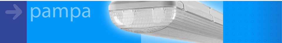EL PAMPA es un plafón estanco cuyos materiales se eligieron para quie soporte el ambiente húmedo, el polvo y resistir la corrosión. El cuerpo está hecho de poliéster y fibra de vidrio y tiene una jaula de poliuretano para el estanco.