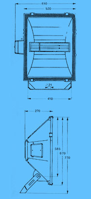 Proyector para una lámpara de 2000 W, a vapor de mercurio halogenado.