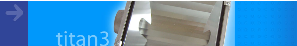 El proyector Titan 3 está compuesto por una carcaza-reflector facetada de aluminio, cerrada mediante dos cabezales de fundición de aluminio y un cristal extra templado a prueba de choque térmico, el que por medio de cuatros cierres de acero inoxidable presiona un burlete de caucho-silicona.